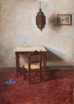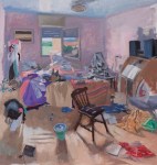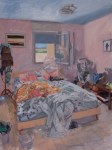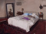 On Friday, May 11, my solo show entitled “Messy Bedrooms: Windows of Time” will open in Naples in a marvellous former Borbonic tunnel space, Sabinalbano Modart Gallery in Vico Vasto a Chiaja, 52 at 7:30 pm. Refreshments will be served, along with a live jazz duo beginning at 9:00 pm. The show remains up until June 4, with daily hours of 10:00-13:30 and 16:30-20:00 from Tuesday-Saturday, Mondays from 16:30-20:00 and closed on Sundays. I was very pleased to have been asked to display these works in particular, as the motif – the messy bedroom – is obviously one close to my heart. While talking with the curator and gallerist, we discussed how these rooms are also “portraits” rather than mere interiors, how the absence of the person and the backdrop that remains is perhaps more revealing; we then agreed that the three self-portraits complimented the messy bedroom group and should be included.